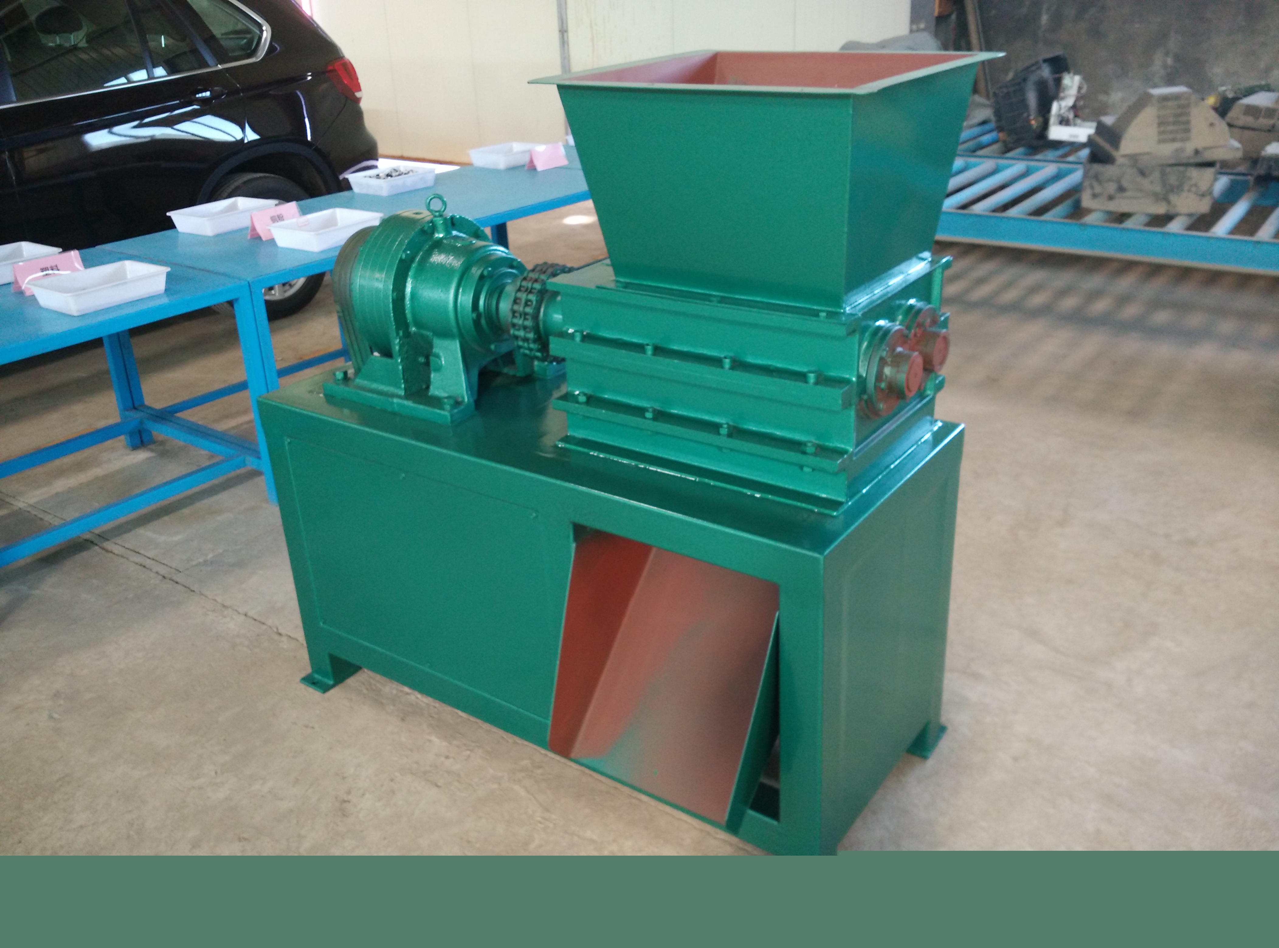 該機設計新穎、噪音低、扭矩大、用途廣,在破碎過程中,具有拉切、扯斷、擠壓、自動退料,能使各種塑料、廢電線、電纜、印刷電路板、廢舊冰箱、洗衣機、空調、電視、電腦等家電及打印機、復印機、傳真機等辦公用品。廢舊橡膠、工程樹脂、城市廢物、木材、管材、粗大塊料破碎之用,每小時處理量1-10噸。